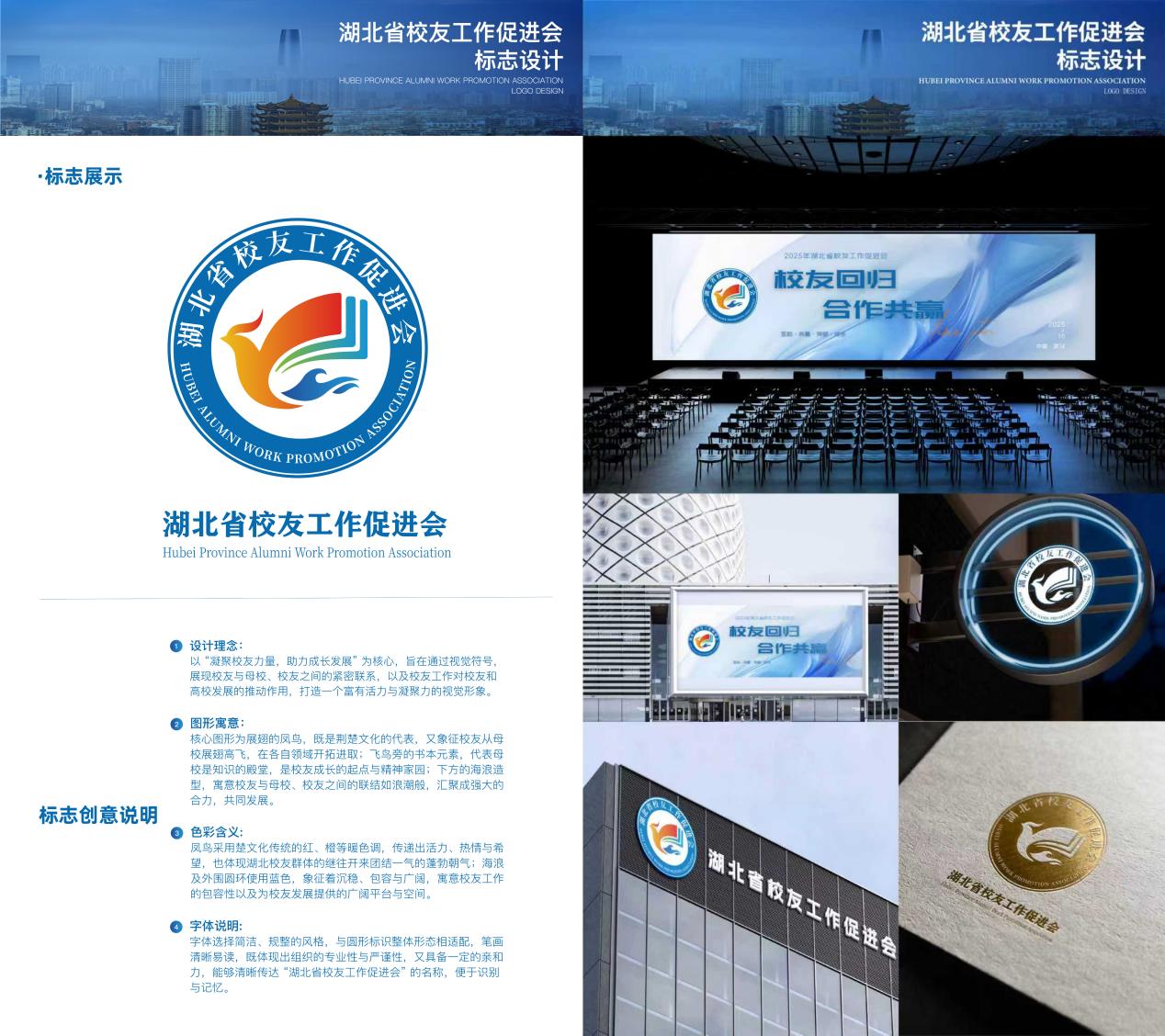 我院省级高校“双带头人”教师党支部书记工作室——湖北大学艺术与设计学院视觉传达与产品设计系教师党支部书记刘卷教授带领团队积极参与湖北省校友工作促进会会标设计比赛,凭借对湖北省校友工作属性的精准定位与创新设计理念,获得一等奖1项、二等奖1项,其中一等奖作品被官方采纳作为会标使用。
