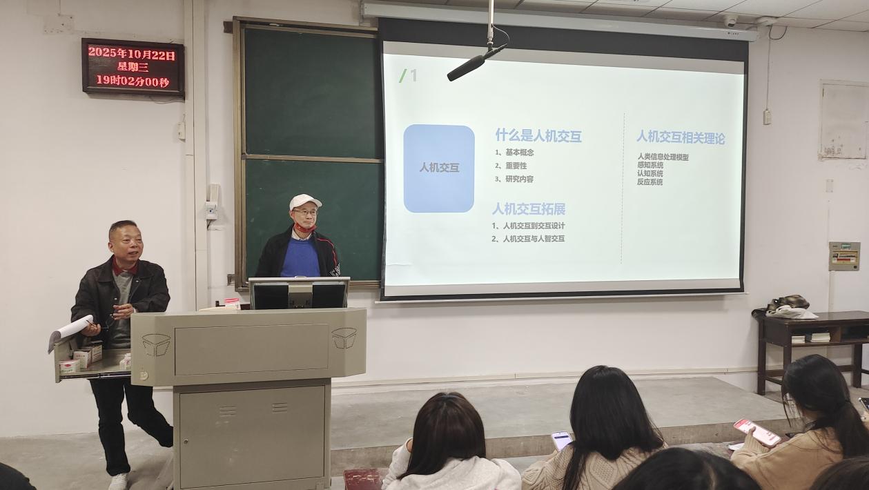 方浩教授提到,随着网络的发展人机交互延伸出人智交互这一概念,并且引用数个生活中的常见的人智交互案例,为同学们清晰地讲述了人智交互的相关理念。同时,方浩教授强调,人机交互与人智交互不同的是,人机交互需要用户主动发出指令要求机器完成相应任务,而人智交互是系统根据用户状态智能识别用户需求并完成相应任务。同时,方浩教授还讲解了如何做好交互设计以及如何基于用户设计信息产品,提到应简化目标、清晰布局并且借助视觉辅助工具,设立以用户为中心的设计流程。