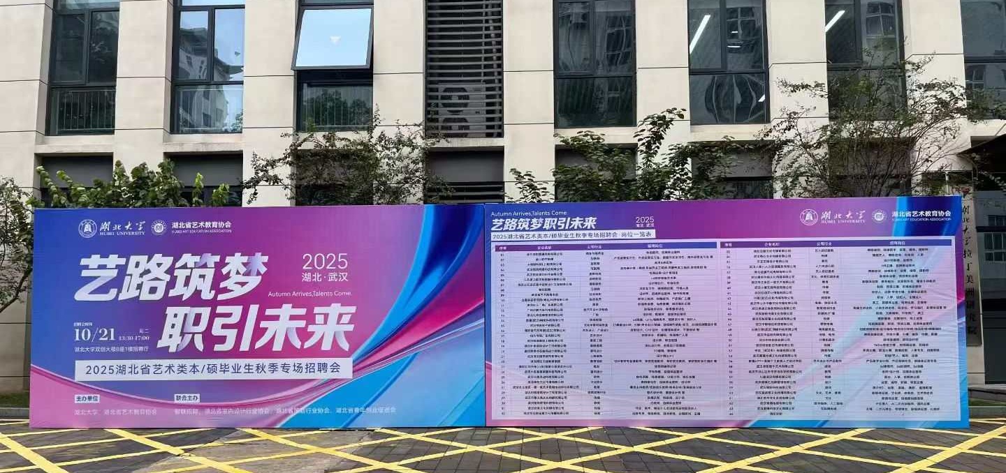 2025年10月21日下午,为切实促进2026届本、硕毕业生更高质量和更充分就业,我院积极组织毕业生参加了“艺路筑梦·职引未来”2025湖北省艺术类本/硕毕业生秋季专场招聘会。此次招聘会由湖北大学与湖北省艺术教育协会共同主办,湖北省室内设计行业协会、湖北省策划行业协会、湖北省青年创业促进会以及智联招聘联合主办。我院高度重视毕业生就业工作,将其摆在突出位置,通过参与此类精准对接活动,多措并举助力毕业生顺利就业、高质量就业。