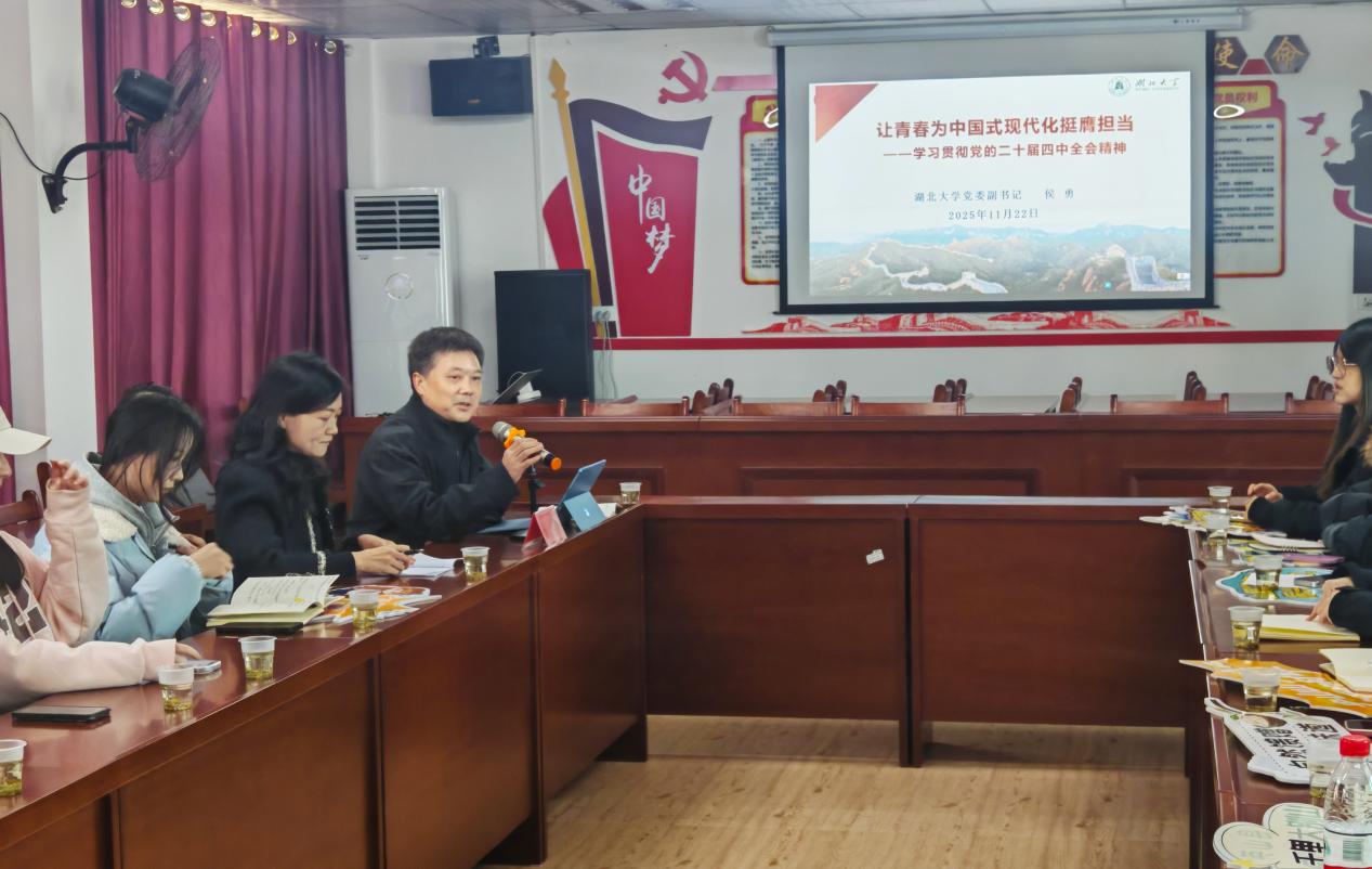 “聆听·融汇思想”阶段,侯勇以《让青春为中国式现代化挺膺担当》为题,宣讲党的二十届四中全会精神,以生动详实的案例,讲解回顾“十四五”期间党和国家取得的成就,阐释“百年未有之大变局”时代背景下的机遇和挑战,重点结合“十五五”时期经济社会发展的指导方针、主要目标和“十五五”规划建议提出的“强国”目标,鼓励青年坚定理想信念,自觉将个人理想融入祖国发展大局,以“自找苦吃”的精神找准目标、明确方向、主动作为,在新的时代背景和历史方位下展现青春担当。