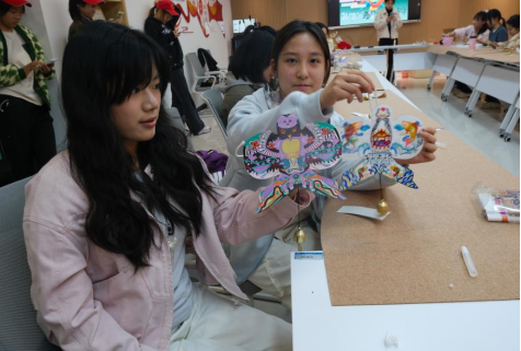 随后,同学们在志愿者们的引导下有序领取工具、颜料、铃铛等材料,开始亲手制作属于自己的春日纸鸢风铃。从竹条的绑扎与定位,到画布上色彩的铺陈与点缀,大家全神贯注,或细致勾勒,或大胆涂鸦,现场洋溢着专注而欢快氛围。志愿者穿梭其间,及时为有需要的同学提供帮助,确保制作过程顺利推进。